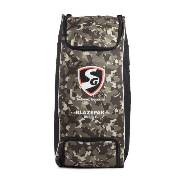 The SG Blazepak Duffle is the ideal wheelie kit bag for cricketers who need to carry all their essential gear with ease. Made from water-resistant, premium fabric, this duffle bag is highly durable and built to withstand the rigors of travel and regular use. It features SG customized zips and runners, two bat-size inside storage sleeves, and a separate shoe pocket for added convenience. The easy top-access main compartment, combined with two medium wheels, ensures better traction and control. For comfort, the bag includes 10 mm mesh-padded shoulder straps for airflow, cushioning, and comfort, along with a fabricated grip handle supported by mesh for better grip. Special bartack stitches provide additional strength and durability, while an extra mesh pocket allows for easy storage of water bottles or accessories.